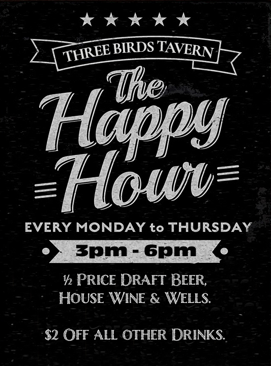 Here, it’s all about sharing good times with family, friends, and neighbors in a setting that feels like home. Whether you’re celebrating a special occasion or just dropping by for a casual hangout, Three Birds Tavern is the place where everyone is welcome, and every visit feels like a gathering with old friends.